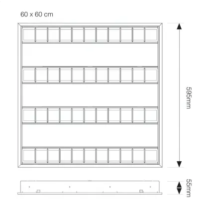 Beschreibung Budgetlight LED Panel Louvre Excell G2 60x60cm 3000K 34W UGR<19 Gloss Reflektor | 3550 Lumen - Dali Dimmbar - Ersatz für 4x14W