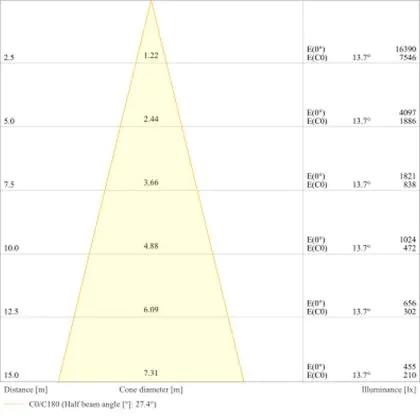 Der Abstrahlwinkel bezeichnet den Winkel, in dem das Licht aus der Lichtquelle ausgestrahlt wird. Er wird in Grad (D) angegeben. Je geringer die Gradzahl des Abstrahlwinkels ist, desto kleiner ist auch der Durchmesser des Lichtkegels, den die Lichtquelle produziert.