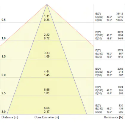 Der Abstrahlwinkel bezeichnet den Winkel, in dem das Licht aus der Lichtquelle ausgestrahlt wird. Er wird in Grad (D) angegeben. Je geringer die Gradzahl des Abstrahlwinkels ist, desto kleiner ist auch der Durchmesser des Lichtkegels, den die Lichtquelle produziert.