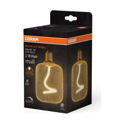 | Herstellername | DECOR LED SPIRAL FILAMENT SQUARE 100 18 GOLD DIM 3.5W 818 E27 | |