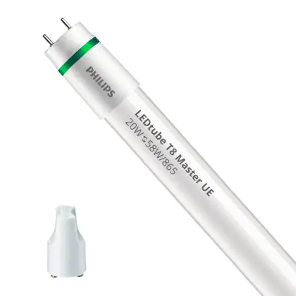 Bei der Philips LED Röhre 150cm | 6500K 20W - Master UE handelt es sich um eine energieeffiziente LED-Röhre. Sie ersetzt Ihre konventionelle Leuchtstoffröhre mit 58W. Die Röhre ist 1500 mm lang und hat die Farbtemperatur 6500K - Tageslichtweiss. Die durchschnittliche Lebensdauer der LED-Röhre beläuft sich auf 70000 Stunden. Wir bieten Ihnen für dieses Produkt eine Garantie von 5 Jahre an.