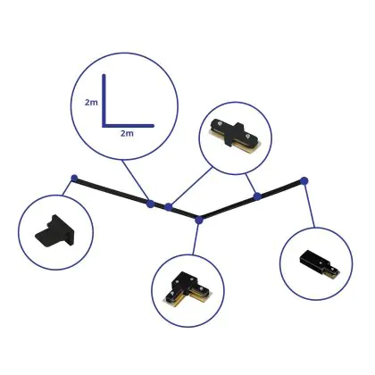Rail Set 1-Phasen L 2 x 2 Meter Schwarz |incl. Abschlusskappe, Stromanschluss und L -Verbinder
