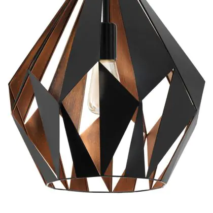 Eglo Suspension Luminaire Carlton 1 Noir, Cuivre | Convient pour E27
