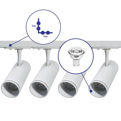 | Nom du fabricant | Complete L shaped 1-Phase Track Set White incl. 4x Spot fixture + GU10 2700K 3W Dim – 1 x 1 meter i | |