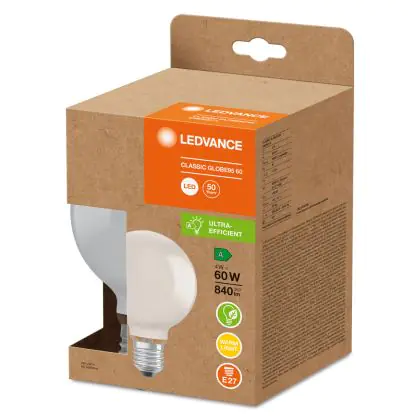 Cette ampoule Ledvance Classic LED E27 Globe Dépolie 4W 840lm - 830 - Blanc Chaud | Équivalent 60W avec son efficacité lumineuse de lumen par watt vous permettra de profiter d’un éclairage de qualité. Avec sa durée de vie de 50000 heures, vous n’aurez pas à vous soucier de son remplacement avant quelques années.