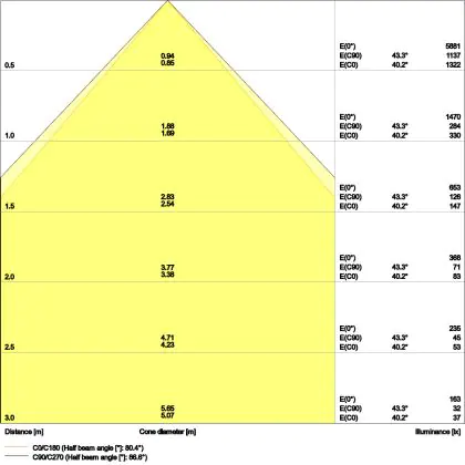 Le code couleur se compose de l'indice de rendu des couleurs (IRC) et de la température de couleur (Kelvin). Le premier chiffre indique le rendu des couleurs (1 = très mauvais rendu des couleurs, 9 = meilleure authenticité des couleurs). Le deuxième et troisième chiffre indiquent la température de la couleur. Exemple : Le code couleur "830" indique que la lampe a un bon rendu des couleurs (8) et une couleur de lumière blanche chaude (30 = 3000K). |