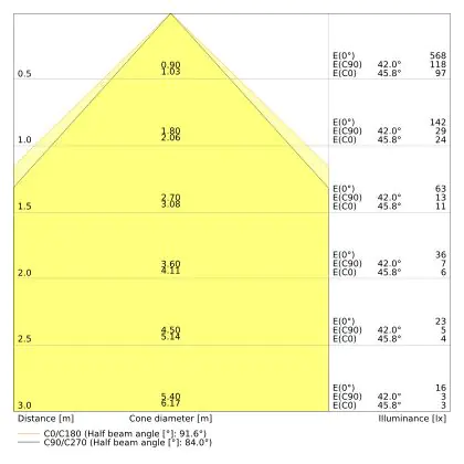 Le code couleur se compose de l'indice de rendu des couleurs (IRC) et de la température de couleur (Kelvin). Le premier chiffre indique le rendu des couleurs (1 = très mauvais rendu des couleurs, 9 = meilleure authenticité des couleurs). Le deuxième et troisième chiffre indiquent la température de la couleur. Exemple : Le code couleur "830" indique que la lampe a un bon rendu des couleurs (8) et une couleur de lumière blanche chaude (30 = 3000K). |
