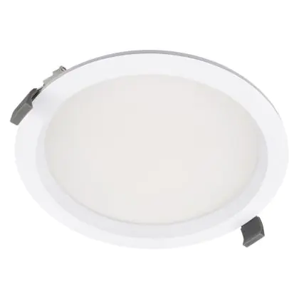 Les spots LED encastrables (aussi appelés Downlights) sont des solution éco-énergétiques permettant de remplacer les spots classiques équipés de technologie à fluorescence. Ce downlight Ledvance Spot Encastrable LED Comfort Opale Aluminium Blanc 30W 3600lm 100D - 930 Blanc Chaud | Diamètre 200mm - IP44 - Meilleur Rendu De Couleur est conçu pour remplacer un spot classique de 2x26. La consommation de ce downlight LED est considérablement plus faible qu’un luminaire classique, à savoir, seulement 30 watts. Une économie d’énergie sans compromettre la qualité de la lumière. Le flux lumineux est de 3600 lumens. La lumière de ce downlight LED est diffusé à 100 degrés et offre un bon rendu des couleurs. La durée de vie moyenne de ce luminaire LED est de 100000 heures.