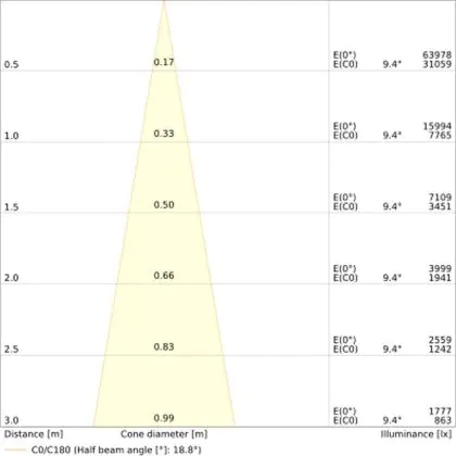 • Indice de rendu des couleurs : 90-99 Ra