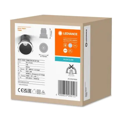 | Nom du fabricant | LED SPOT RECESS TWIST PRO 70mm 5W 4000K White Black | |
