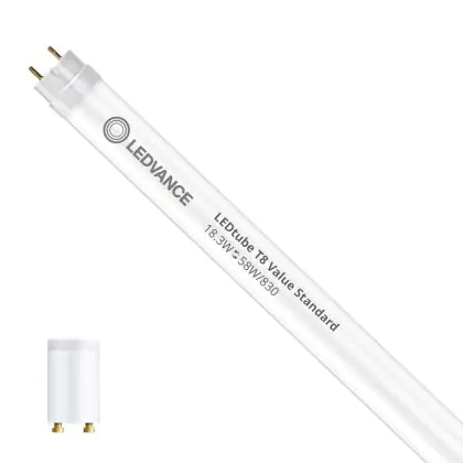 Ce tube LED Ledvance tube LED 150cm | 3000K 18.3W - Value est l’un des produits les plus éconergétiques en remplacement des tubes T8 classiques. Avec ce tube LED vous êtes donc assuré de sa qualité. Avec une puissance de seulement 18.3 W, ce tube LED a la même intensité lumineuse qu’un tube classique qui consomme 58 W. P>