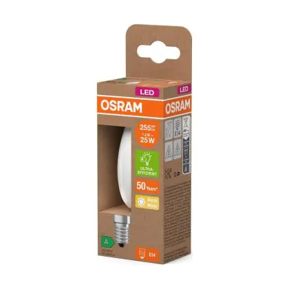 Description Osram LED Classic E14 Bougie Filament Dépolie 1.2W 255lm - 827 | Remplacement 25W