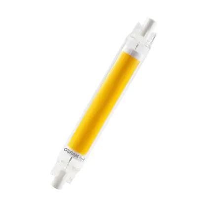 Osram LED Line R7S LED R7S 118mm Claire 8W 806lm - 827 | Remplacement 60W est une ampoule tubulaire linéaire à double extrémité. Ce type d’ampoule permet de délivrer une lumière homogène à 360° avec comme température de couleur 2700K - Blanc Très Chaud. Cette ampoule LED R7s de chez Osram est la solution idéale pour le remplacement de vos anciennes ampoules halogènes. Cette ampoule LED n’a pas besoin de transformateur, elle fonctionne avec 230V et peut se connecter directement sur le secteur électrique.