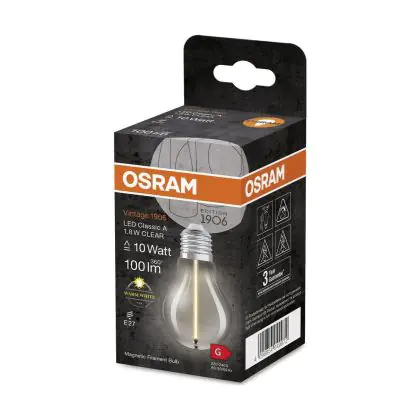 Cette ampoule Osram Vintage 1906 LED E27 Special Filament Claire 1.8W 100lm - 827 | Remplacement 15W est l’alternative idéale pour la remplacement de votre ampoule classique de 15 W. La technologie LED intégrée vous offrira de nombreux avantages. Les ampoules à incandescence traditionnelles ont une durée de vie limitée. Cette alternative LED vous permettra de profiter d’un éclairage durable et fiable.