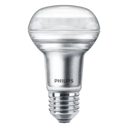 La lampe LED Philips Corepro LED Spot E27 R63 3W 210lm 36D - 827 Blanc Très Chaud | Équivalent 40W avec culot E27 (Ampoule à vis standard) est le remplacement idéal des lampes à incandescence et halogènes classiques. En raison de la faible consommation d'énergie, vous économisez considérablement sur vos coûts d'énergie. Les lampes à LED Philips n’utilisent qu’une petite partie de la puissance (3 W) que les lampes à incandescence et halogènes classiques (40 W). Les lampes à LED ont une excellente classe énergétique G, ce qui signifie qu'elles sont très écologiques et peuvent être recyclées après utilisation. En raison de leur durée de vie considérable de 15000 heures, vous n’aurez pas à les changer de si tôt.