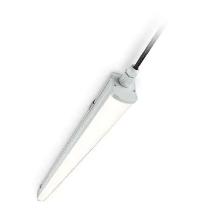 La réglette LED, Philips Réglette LED Étanche Ledinaire WT060C 56W 5600lm - 840 | 150cm est conçue pour remplacer les réglettes TL-D traditionnelles et permettant d’économiser jusqu’à 50% d’énergie. Très souvent utilisé pour l’éclairage d’entrepôts, d’usines, de parking et d’autres grands espaces extérieurs. Très simple d’installation, cette réglette de 150cm peut se fixer au plafond et au mur et projette 4000K - Blanc Froid, comme couleur de lumière. La Philips Réglette LED Étanche Ledinaire WT060C 56W 5600lm - 840 | 150cm dispose d’un indice de protection IP65 à l’eau et la poussière et d’une résistance aux chocs IK08.